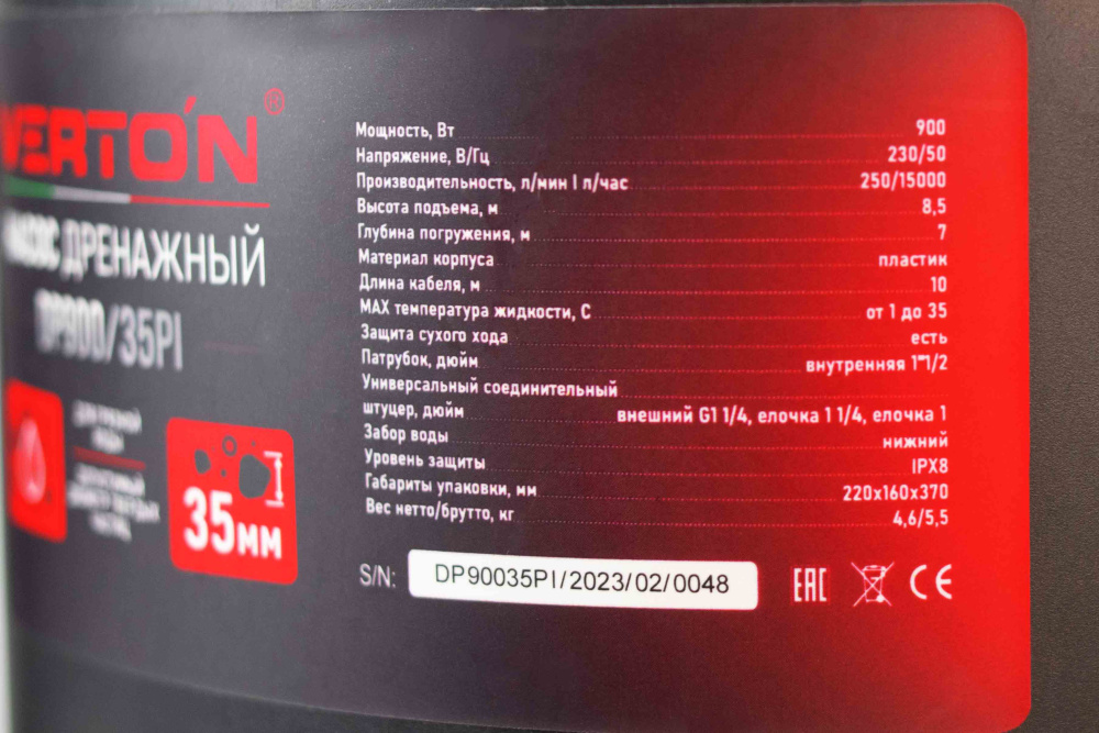 • Допустимый размер твердых частиц до 35 мм;