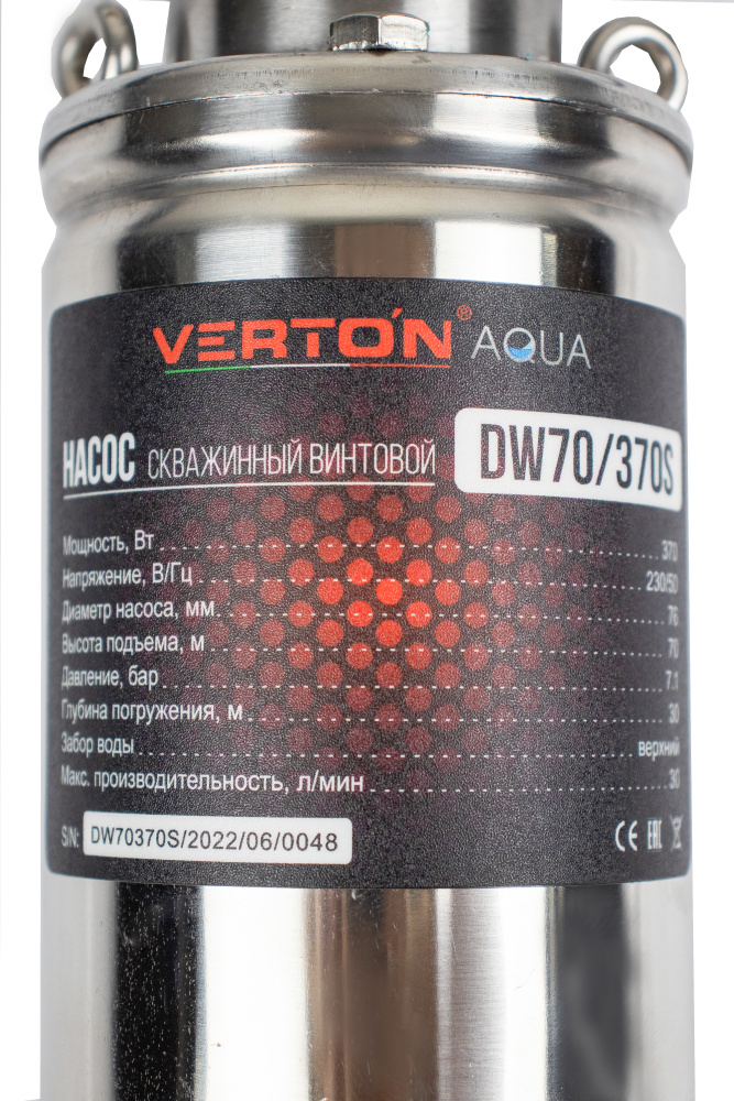 • Удобная эксплуатация. Благодаря малому диаметру насос Verton DW70/370S, легко устанавливать в скважину.