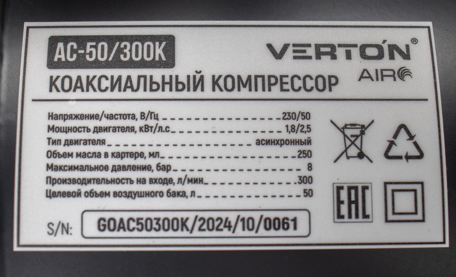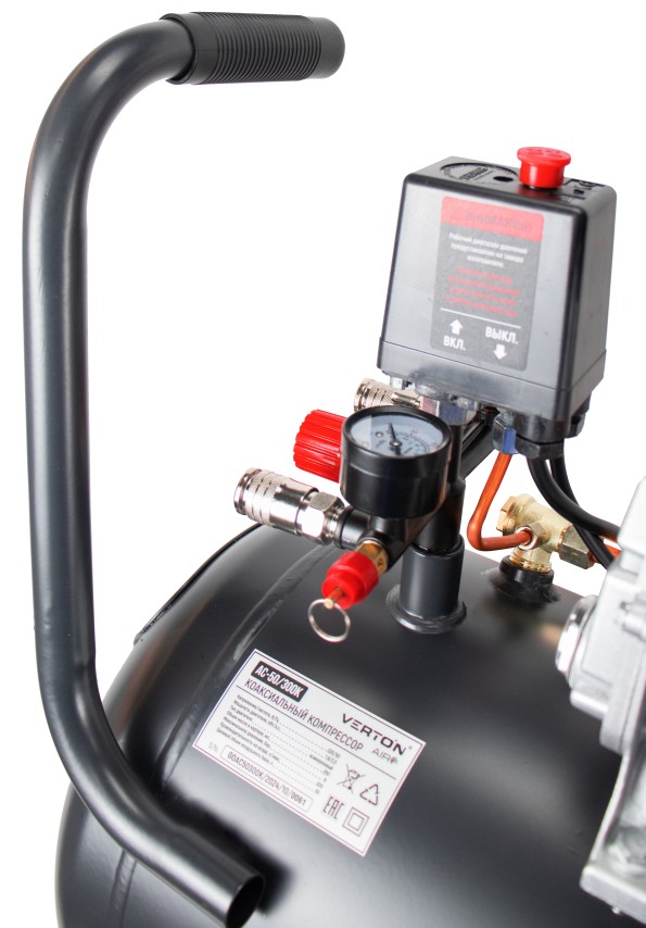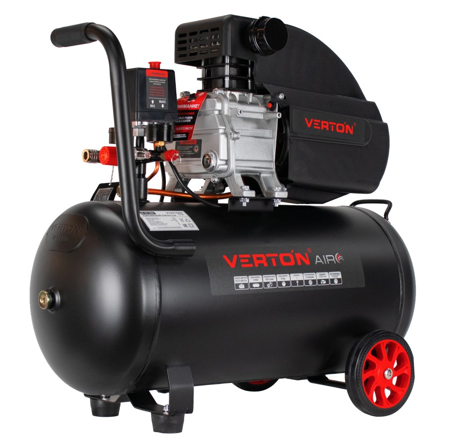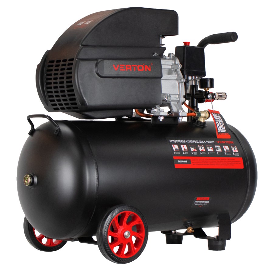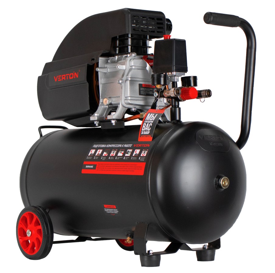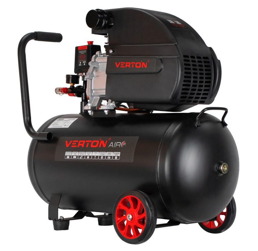 Компрессор Verton Air AC-50/300K с прямым приводом подойдет для сервисов и небольших производств. Модель оснащается вместительным ресивером на 50 литров, что существенно снижает интенсивность его рабочих циклов. Наличие двух манометров обеспечивает визуальный контроль величины давления и контролировать давление как внутри ресивера, так и на выходе из него. Чугунная головка является устойчивой к механическим повреждениям и увеличенной теплоотдачей. Рукоятка эргономичной формы и транспортировочные колеса облегчают маневренность и удобство транспортировки.