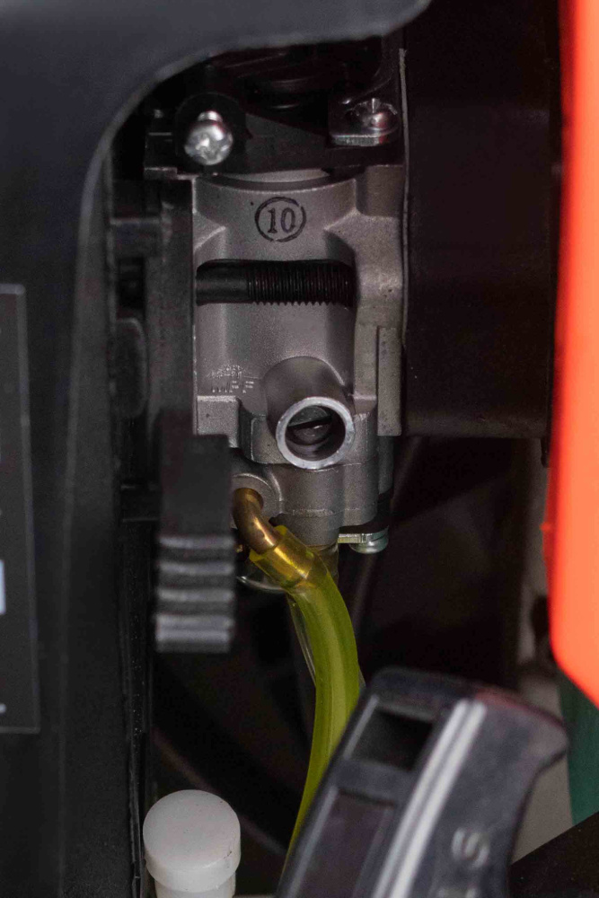 • Число оборотов двигателя плавно регулируется рычагом, расположенным на рукоятке управления;