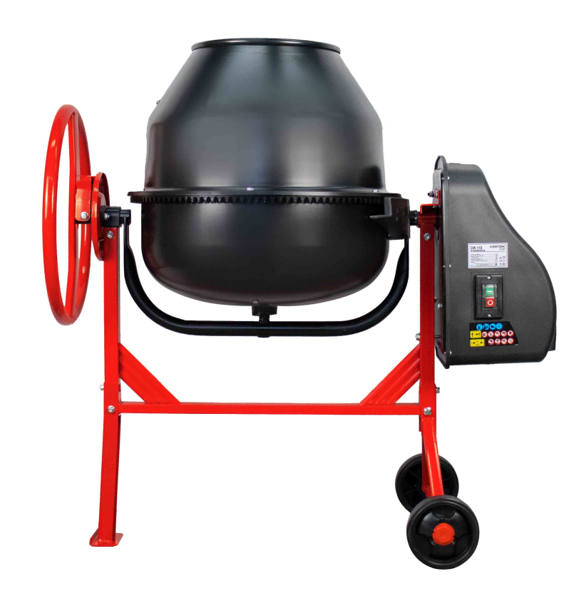 Основной частью бетономешалки является барабан. На его стенках закреплены лопасти. К нижней части барабана крепится ось, которая через подшипник устанавливается на траверсе. По всей окружности барабана в центральной части закреплен венец (опоясывающая круглая зубчатая шестерня) посредством которой барабану и будет передаваться вращение от двигателя.