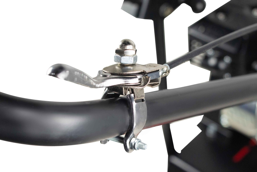 • Высокая мобильность за счет наличия возможности складывания ручки управления, а также транспортировочной скобы и колес;