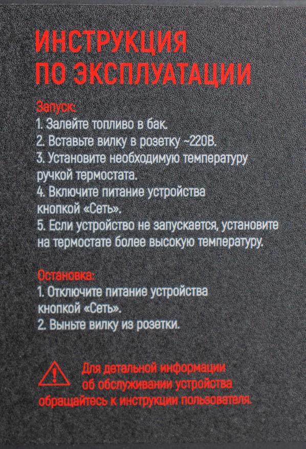 • Камера сгорания изготовлена из листовой нержавеющей стали. Она лучше отражает ИК-излучение – корпус меньше нагревается, пушка работает эффективнее и увеличивается ресурс;