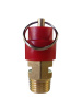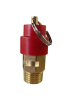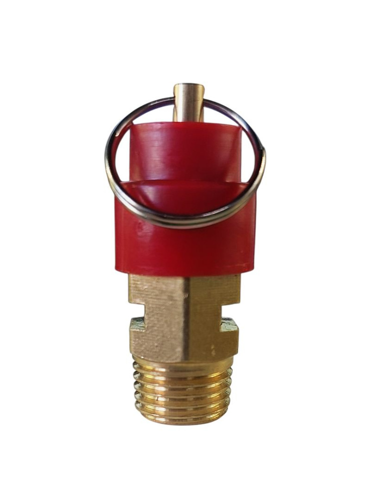 Конструкция: Изделие выполнено из латуни и имеет красную пластиковую ручку (колпачок) с кольцом, потянув за которое, можно вручную сбросить давление в системе для проверки.